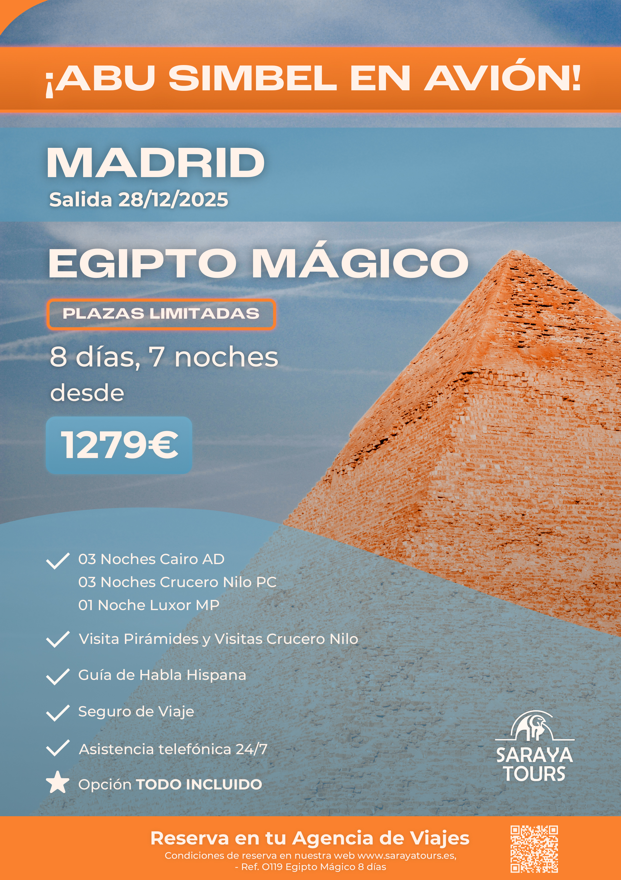 Exclusivo! Egipto Mágico con Abu Simbel en Avión Salida MADRID 28/12/25 Plazas Limitadas